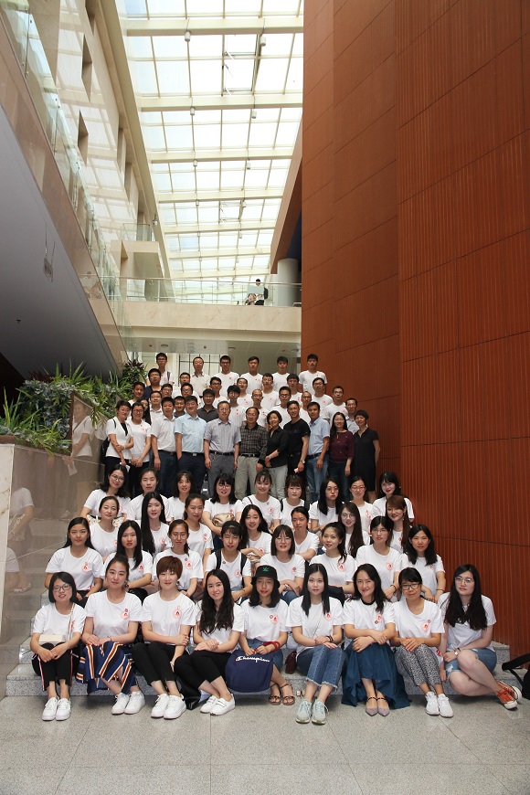 最后,与会老师上台为全体毕业生馈赠并佩戴院徽。