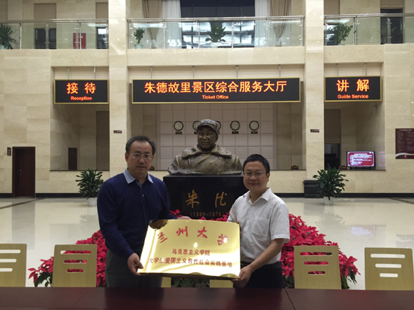 在挂牌仪式上,张新平院长代表学院同朱德故居管理局签订了《爱国主义教育实践基地建设协议》,双方将在科学研究、教育学习、实践考察等方面深入合作。朱德故居爱国主义教育实践基地的开辟将极大地助推马院乃至全校实践教学的发展。