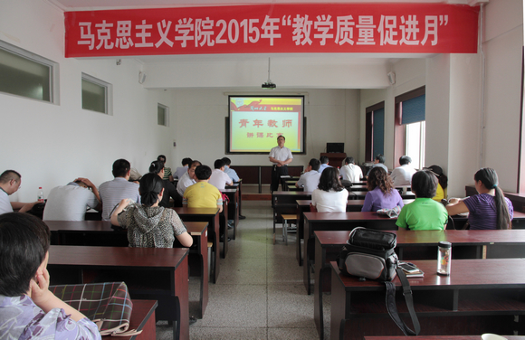 6月18日,马克思主义学院“教学质量促进月”活动之青年教师讲课比赛在本部齐云楼1423教室举行。教育学院副院长王光荣教授,文学院副院长李利芳教授,学院常务副院长张新平教授,王维平教授,蒙慧教授,杨宏伟副教授和蔡文成副教授等七位评委参与了点评工作。比赛由常务副院长张新平教授主持。