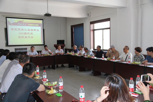 听到、看到学院的发展和想念的昔日恩师,校友们感慨万千,校友们纷纷表示,兰州大学的优良校风和老师们的严谨治学对自己的职业生涯产生了深刻影响和极大帮助,他们感谢母校、感谢学院的悉心培养,尽管今天各自从事的职业不同,但是马克思主义基础专业扎实的理论功底都是他们成就事业的基础。他们真诚祝福学院再创佳绩,老师们身体健康。最后校友们与老师在亲切、轻松的氛围中观看了91级同学制作的视频短片,幽默、怀旧的照片勾起大家共同的美好回忆,座谈会在热烈、亲切的氛围中结束。
