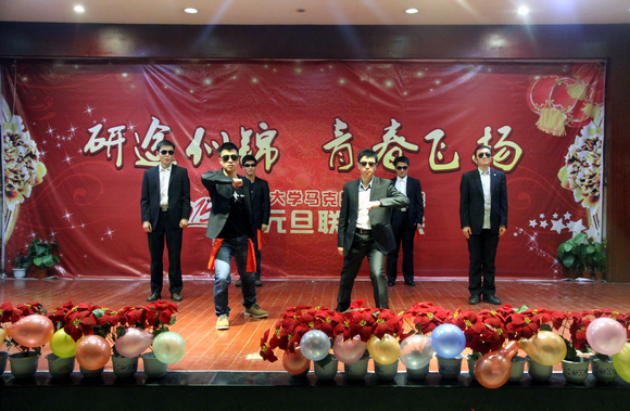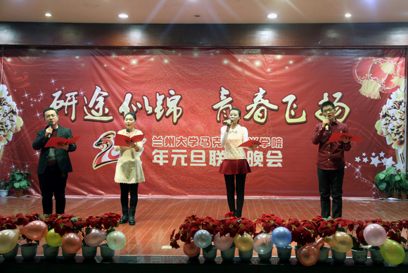 晚会在欢快的开场舞中拉开了序幕。《夜空中最亮的星》投射出来的恬静意境与浪漫情怀,让观众动容;王维平教授创作的现代诗《兰大图书馆的钟塔》被同学们深情演绎,让观众们徜徉在美丽的校园里,感受着兰大的一草一木和图书馆钟塔散发出的独特魅力;一曲《好运来》为全体师生送去了新的一年最美好的祝愿;热血男儿们精湛的《双节棍表演》使整个舞台沸腾起来;queens舞团的现代舞《今天做什么》动感时尚、活力四射,让观众们high到爆表;相声《学校那点事》用诙谐幽默的词句演绎了学生在校园里发生的点点滴滴,逗得全场捧腹大笑;老师们的献歌《向往神鹰》、《玛依拉》、《三套车》、《鸿雁》热情饱满、悠扬动听,将整个晚会推向高潮;《我的深情为你守候》、《看病》、《歌曲串烧》、《拉丁秀》等精彩绝伦的歌舞小品表演以及轻松欢乐的师生游戏互动都使整场晚会高潮迭起、惊喜不断。晚会在舞蹈《茉莉花》的美丽绽放中圆满落下帷幕。