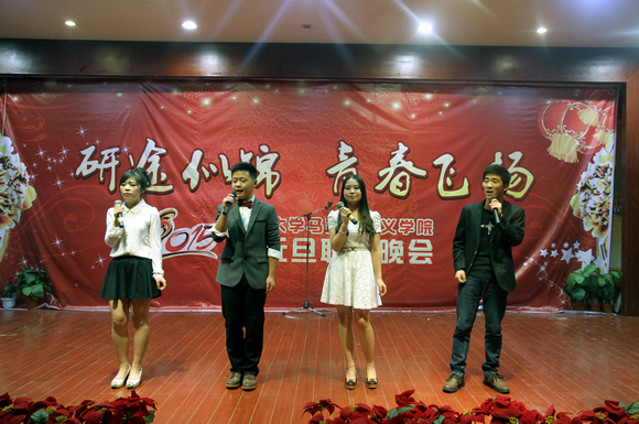 12月26日晚,马克思主义学院“研途似锦·青春飞扬”2015年元旦晚会在八一宾馆隆重举行。校监察处副处长徐国英,学院领导陈彦通、张新平、谢瑶、佟春明以及师生200余人观看演出。晚会开始前,学院对优秀研究生干部进行了表彰,张新平代表学院致新年贺词。