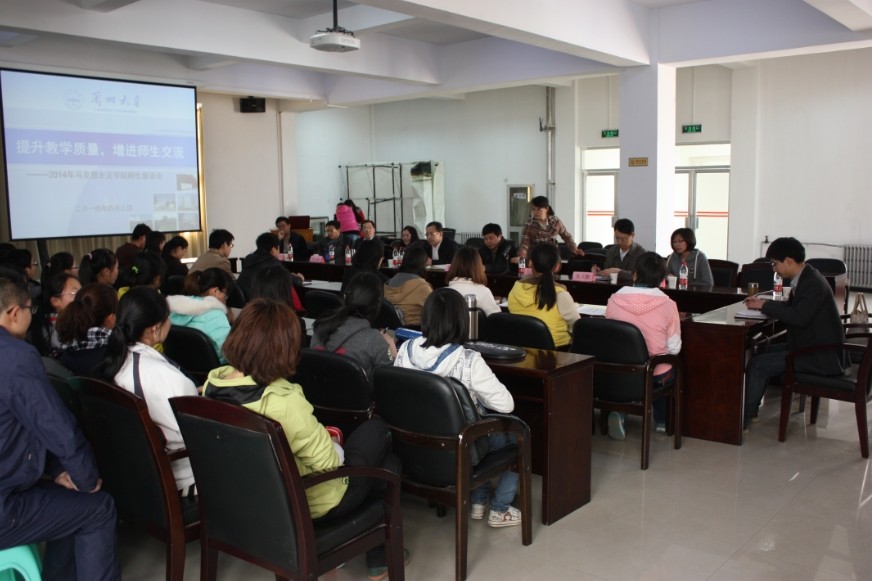 为了贯彻落实兰州大学2013年本科教学工作会议精神,推动学院教学内涵式发展,进一步提高学院本科教学质量。2014年4月3日下午,针对低年级大学生学习生活中的困惑和问题,马克思主义学院在榆中校区办公楼二楼圆厅召开师生座谈会。本次师生座谈会围绕“直面大学生活,增进师生交流,提升教学质量”为主题展开。马克思主义学院主管本科教学负责人、各研究所、院学工组、班主任、学院办公室相关教师以及学院2012、2013级全体本科生参加了此次座谈会。会议由学院副院长张新平教授主持。
