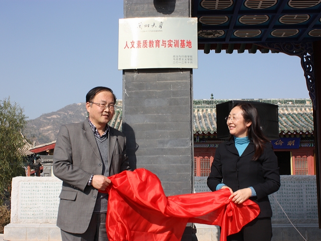 2012年10月17日下午3时,学院在兰州国学馆举行了兰州大学政治与行政学院、马克思主义学院“人文素质教育与实训基地”挂牌仪式。兰州市文广局副局长朱秀红,兰州市文物局副局长陈世忠,兰州国学馆馆长王伟,兰州大学政治与行政学院院长王学俭教授,副院长丁志刚教授,院长助理杨宏伟副教授与学院30名研究生、本科生代表参加了仪式。