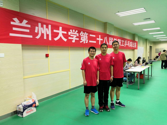 2018年11月17日,兰州大学第二十八届教职工乒乓球赛在城关校区西校区新体育馆举行。由我院王彦涛、边耀君、宫长瑞、杨荣、王永祥五位教师组成的男队,代表学院参加了男子团体比赛,于上午和下午,分别与数学与统计学院、兰大一院、地矿学院和资源环境学院进行了小组赛的激烈角逐。五位队员积极进取,奋力拼搏,展现出了我院教师昂扬向上,团结一心的精神风貌。