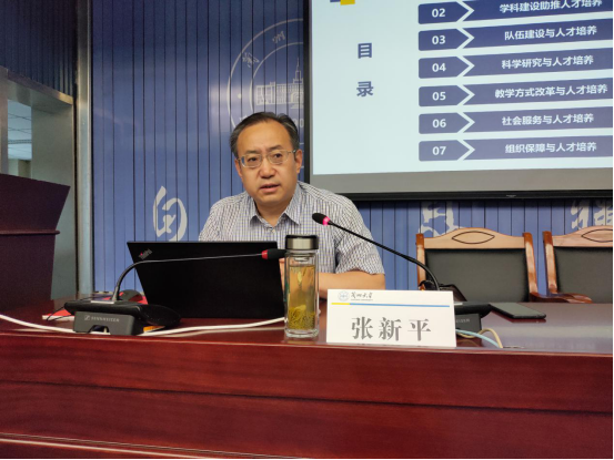 7月2日上午,院长张新平教授受邀为由中宣部、教育部主办,兰州大学、全国高校思想政治理论课教师研修基地(兰州大学)承办的2019年高校思想政治理论课骨干教师研修班(总第102、103期)作了题为“马克思主义学院人才培养的思考”的学术报告。来自西部12省(市、区)高校的200名思想政治理论课骨干教师及马克思主义学院师生代表聆听了报告。报告由马克思主义学院副院长刘建军主持。
