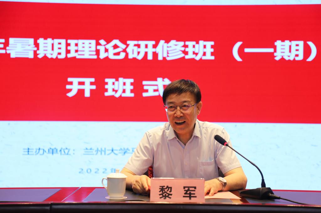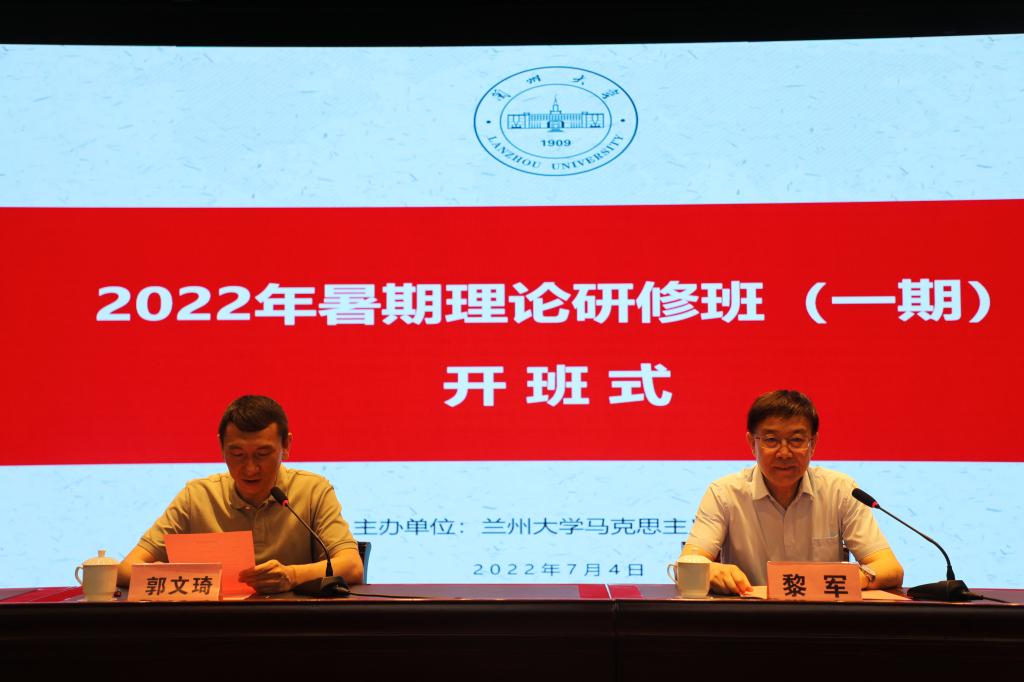 近日,由兰州大学马克思主义学院主办的2022年暑期理论研修圆满结束,来自湖南女子学院、哈尔滨信息工程学院、东北农业大学、海南热带海洋学院和沈阳体育学院5所高校的102名思政课教师参加研修。兰州大学马克思主义学院党委书记黎军教授出席开班仪式并致辞,开班仪式由学院党委副书记、副院长郭文琦主持。
