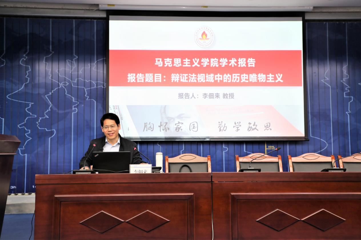 应马克思主义学院邀请,5月7日上午,武汉大学二级教授、博士生导师、哲学学院院长李佃来教授在逸夫科学馆报告厅作了题为《辩证法视域中的历史唯物主义》的学术报告,我院部分教师、全体研究生到场聆听,副院长杨宏伟教授主持报告会。