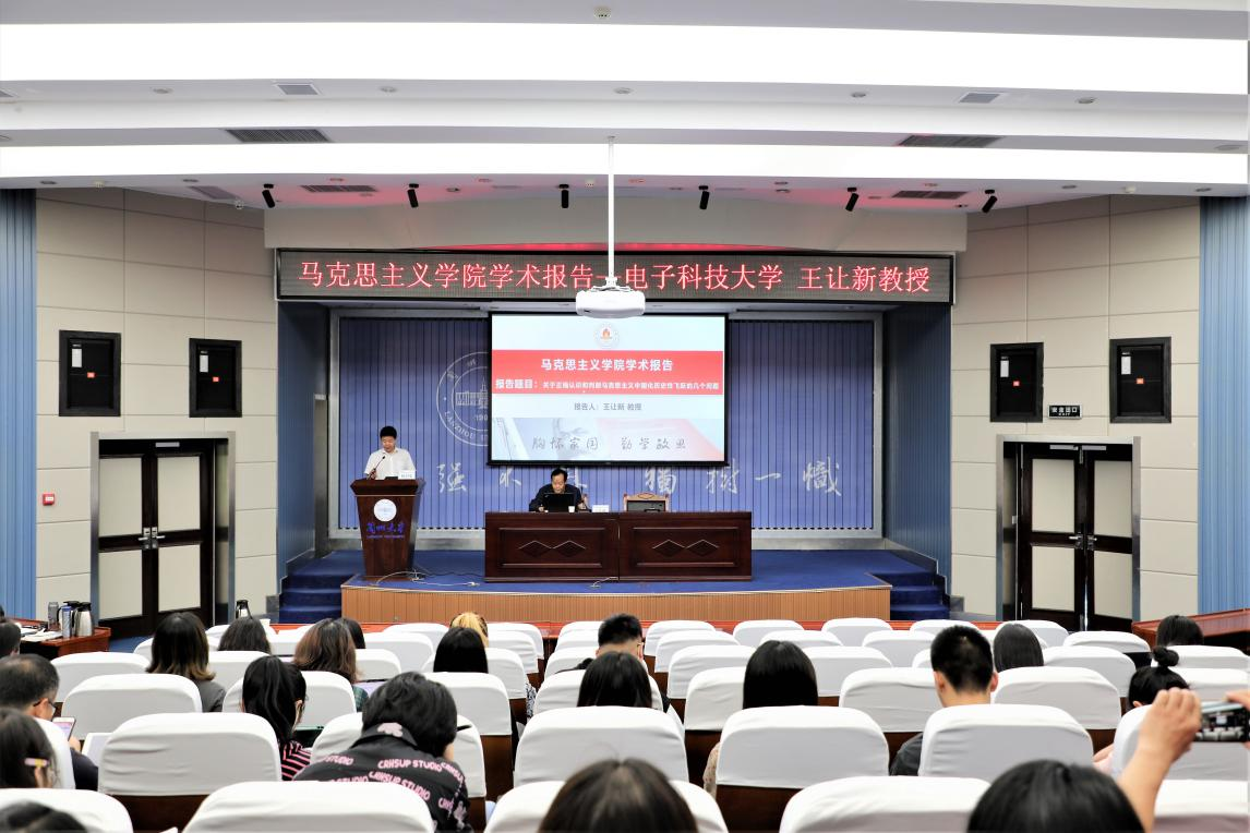 应马克思主义学院邀请,6月1日上午,电子科技大学马克思主义学院教授、博士生导师王让新在逸夫科学馆报告厅作了题为《关于正确认识和判断马克思主义中国化历史性飞跃的几个问题》的学术报告,我院部分教师、全体研究生到场聆听,副院长杨宏伟教授主持报告会。