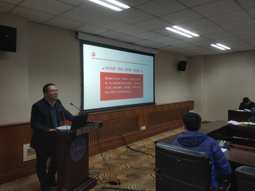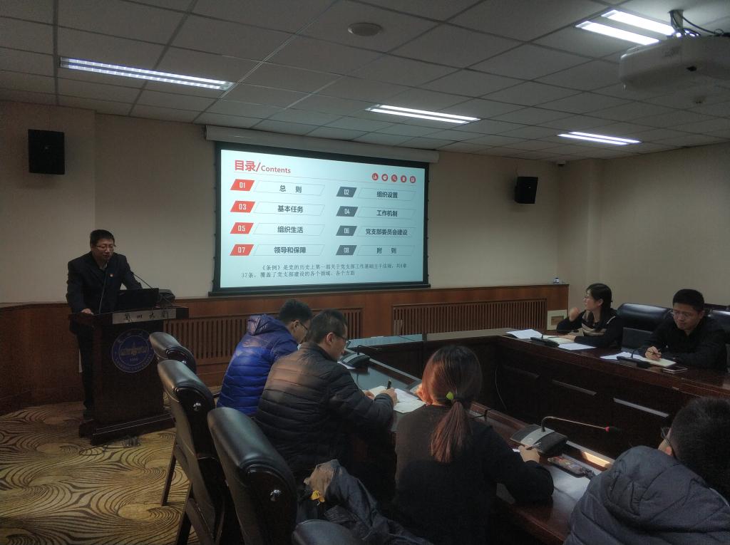 联合学习部分,学校办、政研室、督查室党支部党员徐鹏彬从《中国共产党支部工作条例(试行)》颁布实施的重要意义入手进行了重点突出、数据详实的领学;中国近现代史基本问题研究所研究生党支部书记崔明就新修订的《中国共产党纪律处分条例》进行了专业性的深入解读。