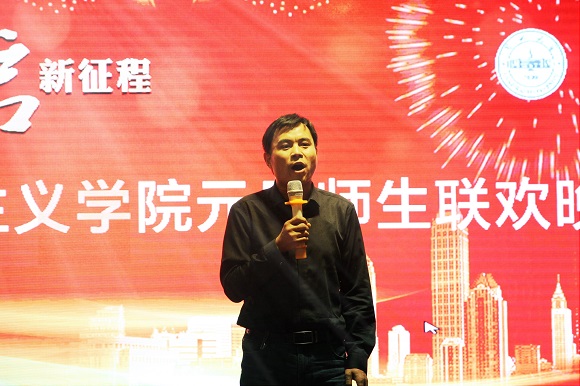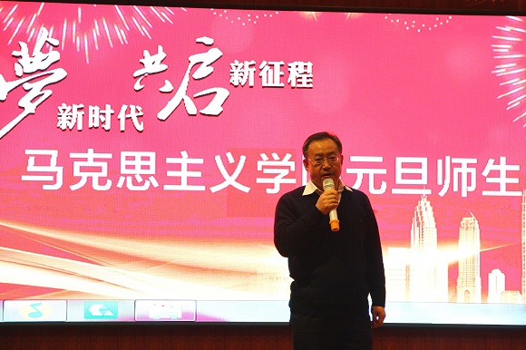 学院党委书记赵泽斌在致辞中首先感谢全院师生在过去一年中的努力和付出,并希望全院师生继续学习贯彻习近平新时代中国特色社会主义思想,不断开创马克思主义学院发展的新局面。院长张新平在致辞中总结了学院过去一年在人才培养、社会服务、文化传承、师资队伍等各方面取得了的成绩,并代表学院向在过去一年对学院的改革和发展作出贡献的全院师生及家人致以最诚挚的问候和最美好的祝愿。