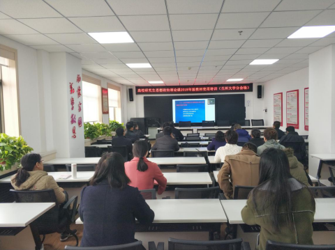 根据教育部《关于做好高校研究生思想政治理论课2018年版教材(教学大纲)使用培训的通知》部署和安排,学院和教研室于11月6日-9日组织我院研究生思想政治理论课教师参加2018版新教材(教学大纲)使用培训活动,本次培训采用网络直播的方式。